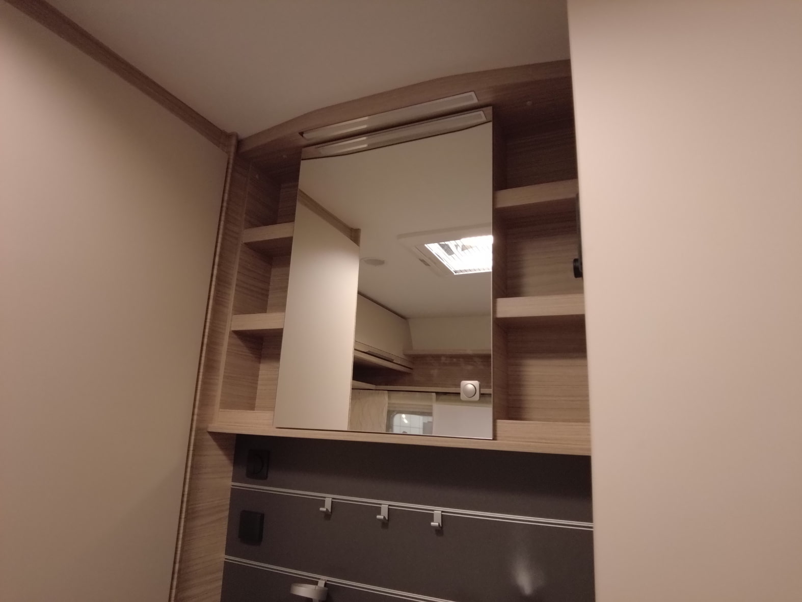 • Armario con espejo en el baño abierto