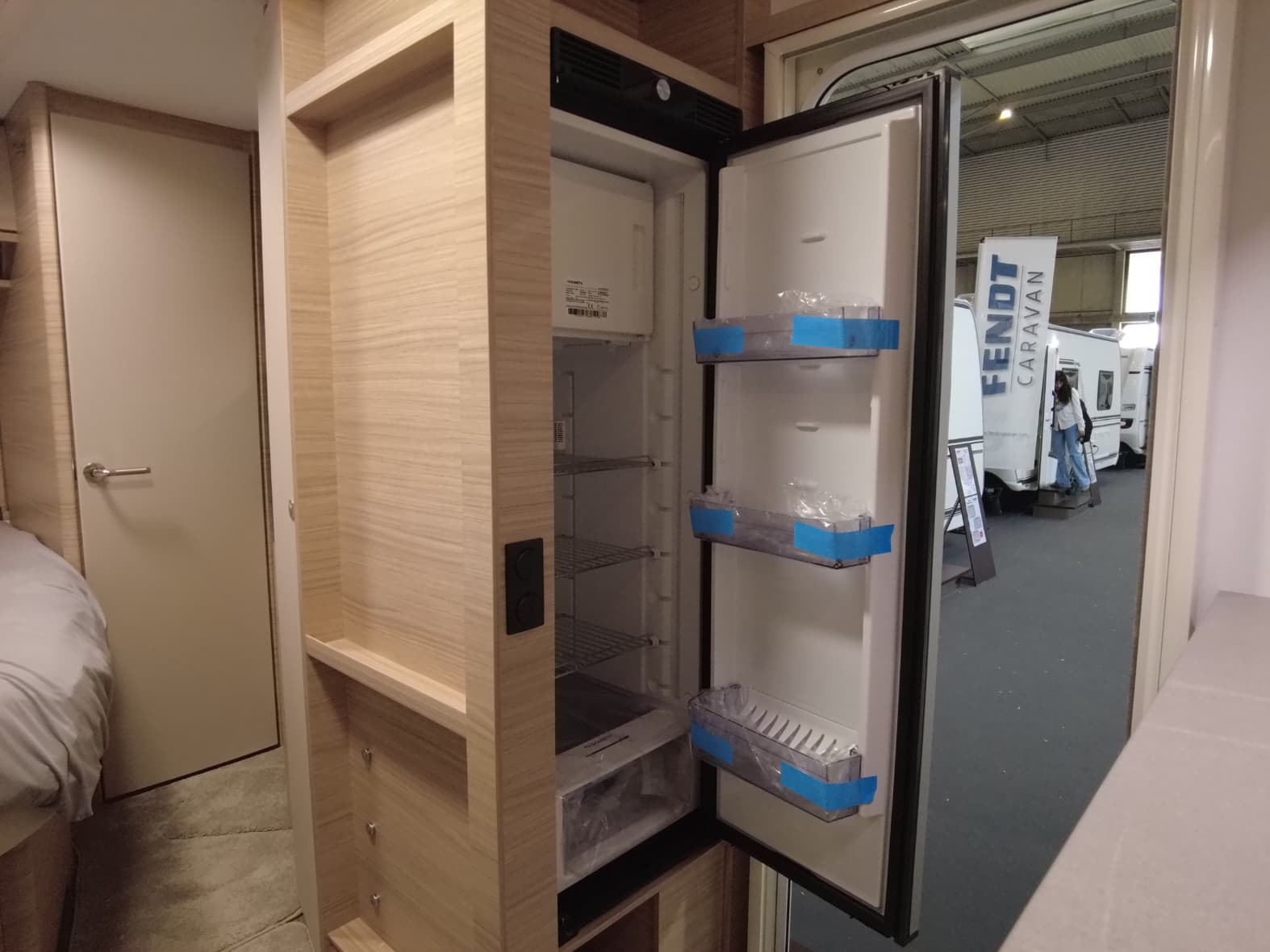 • Alfombra en la entrada de la puerta con el logotipo de Fendt Caravan